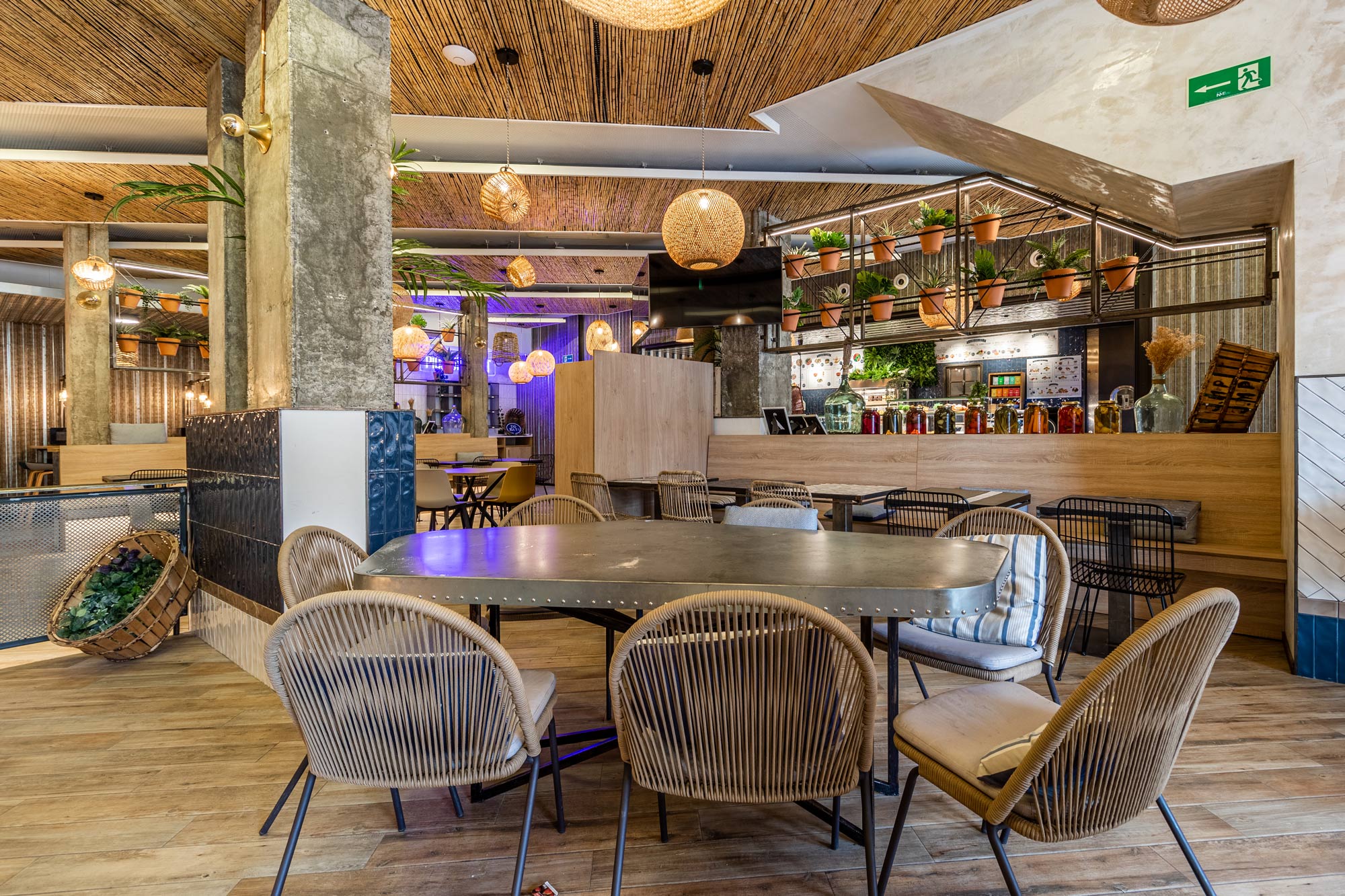 El desafío era que, con el capital referido, tenían que apañárselas para localizar una buena ubicación e introducir en un espacio de no más de 100 metros cuadrados los servicios propios de un restaurante: zona de basura, cuartos de baño, almacenaje, cocina, gran surtido de producto y comedor habilitado con taburetes y mesas para acoger a entre 30 y 35 comensales, terraza aparte. Añadir a esto que, además de atender en restaurante, la oferta incluye comida para llevar y reparto a domicilio. “La verdad es que fue un reto. Había que aprovechar el espacio al máximo y tenerlo todo muy bien ordenado”. Para ello, organizaron la oferta en torno a una barra con un lineal de show cooking, con especial atención a la iluminación y la decoración que mejorase el factor experiencial.